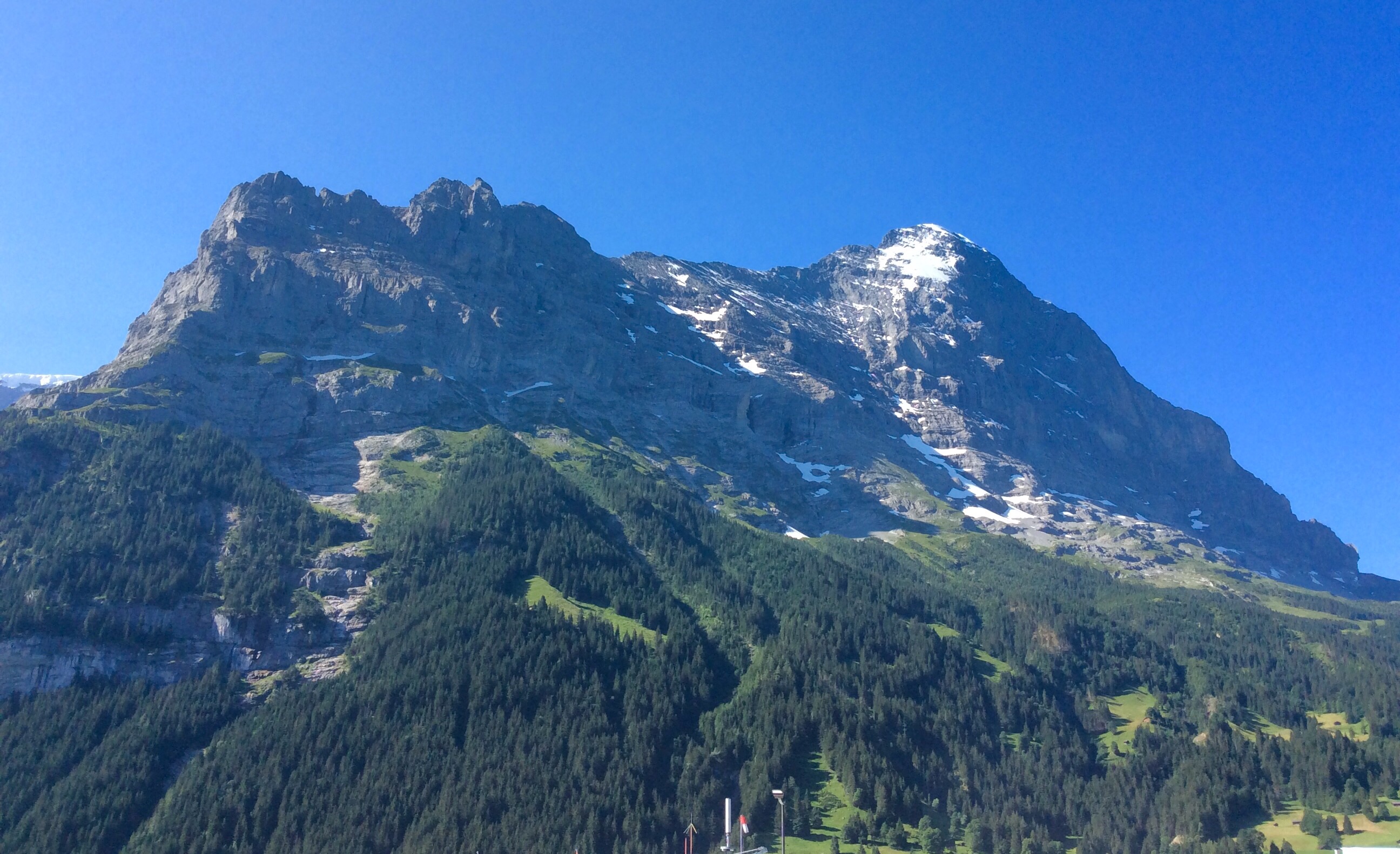 Pauline and I had a look round Grindelwald this morning after breakfast, the Eiger mountain in full glory, not a cloud in the sky, unlike yesterday where in the evening it was bathed in the red from the sunset.